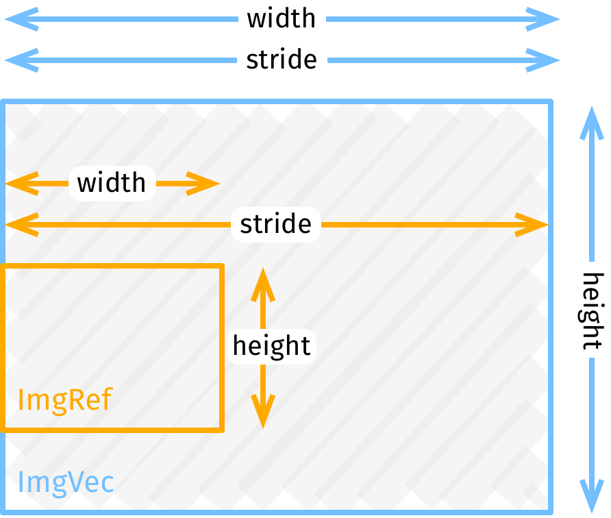 Additionally, some graphics code requires use of stride, which allows defining sub-regions of images without copying. This is useful for slicing and tiling, and to support bitmaps that require padding (e.g. in video formats that round frame sizes to a multiple of a block size).